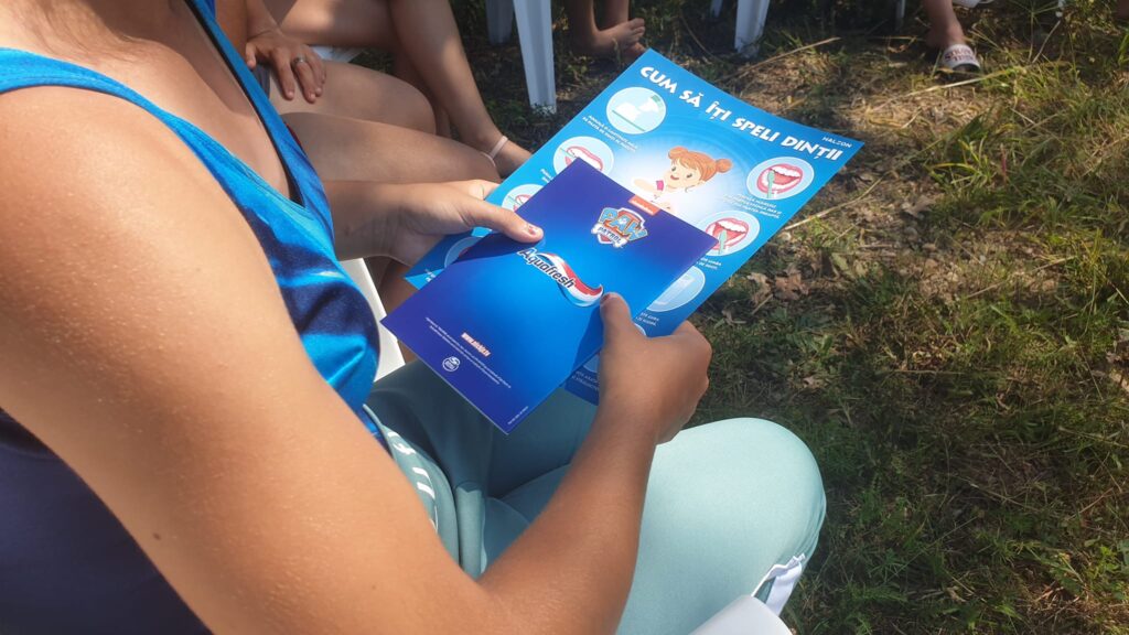 Am vrut să profităm de ieșirea la iarbă verde și bălăceală pentru a face și câteva activități educative, iar în sprijin ne-a venit clinica Pure Dent. Așa că înainte de distracție, copiii au învățat noțiuni elementare despre igiena orală de la profesioniști și despre importanța protejării dinților și gingiilor.